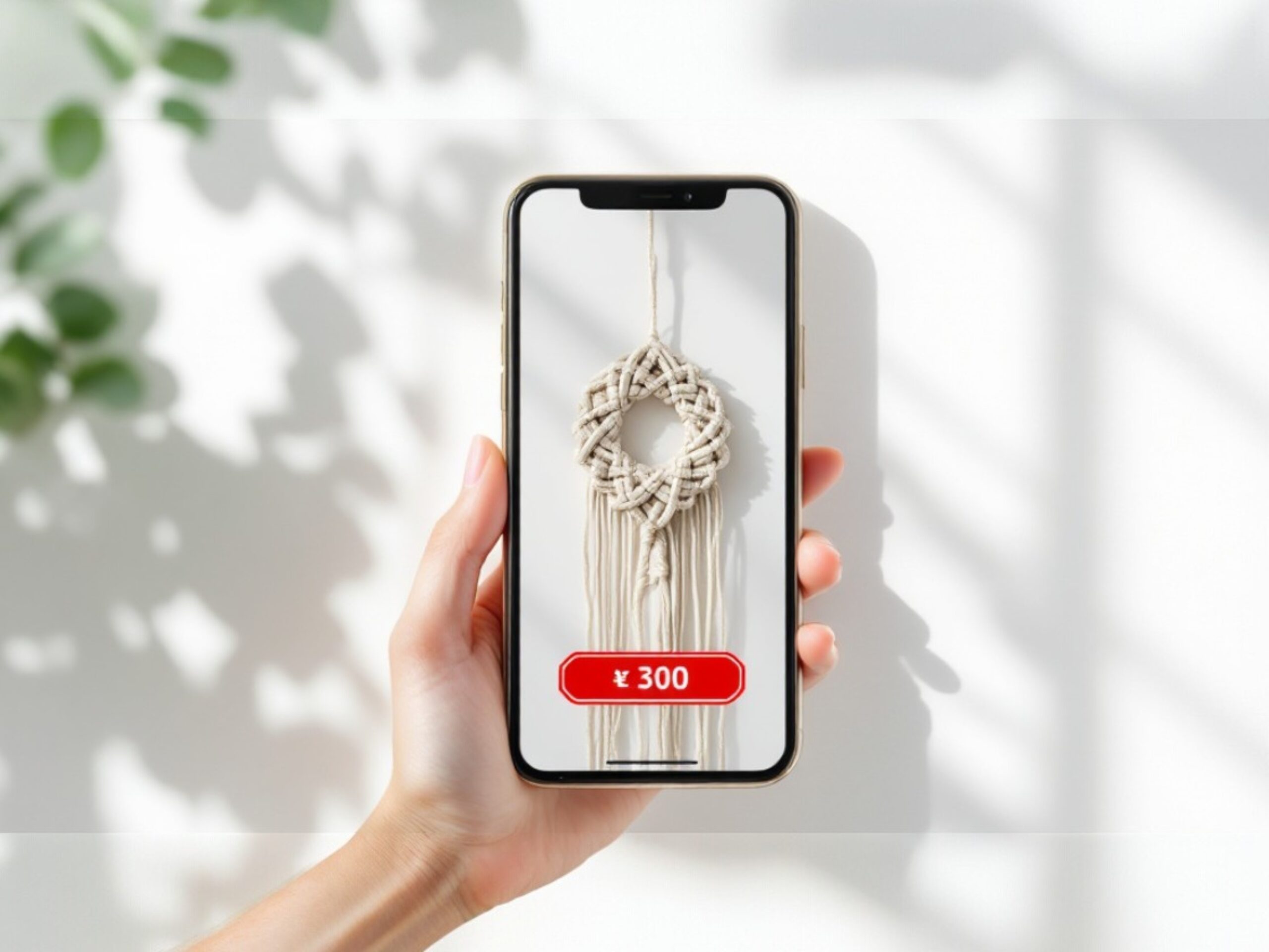 数時間かけて作られたであろうマクラメ編み作品が、なんと数百円で出品されていたのです。